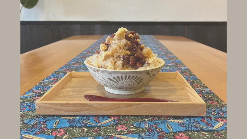 当店名物「新垣ちんすこうぜんざい」をお出ししてます。